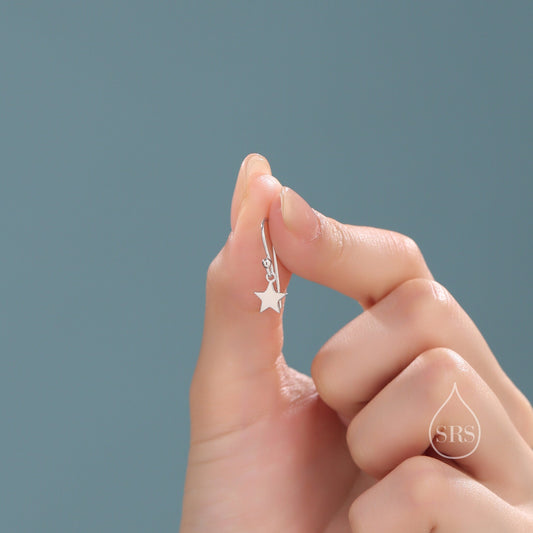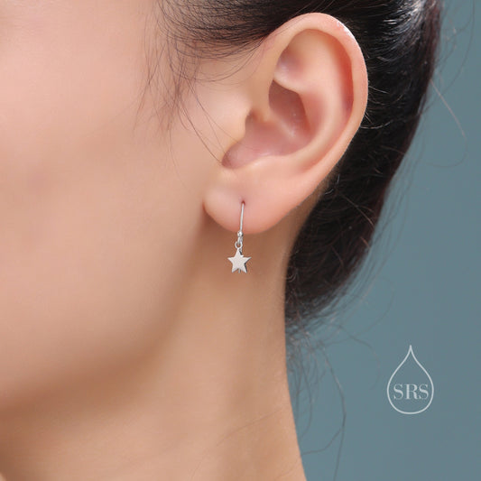 Minimalist Star Dangle Drop Hook Earrings in Sterling Silver, Silver or Gold or Rose Gold, Tiny Star Dangle Earrings