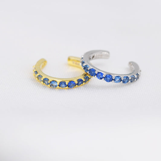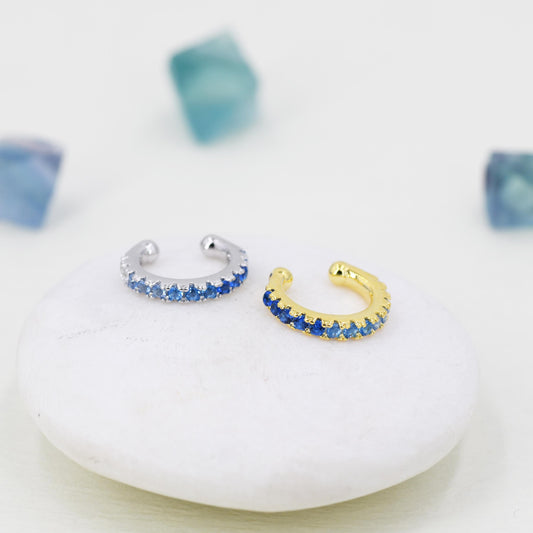 Sapphire Blue Ombre CZ Ear Cuff in Sterling Silver, Silver or Gold, Simple Piercing Free Earrings, Minimalist Ear Cuff, Blue CZ Ear Cuff