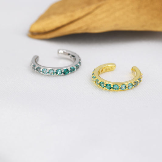 Emerald Green Ombre CZ Ear Cuff in Sterling Silver, Silver or Gold, Simple Piercing Free Earrings, Minimalist Ear Cuff, Green CZ Ear Cuff