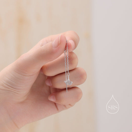 Delicate Ginkgo Leaf Threader Earrings in Sterling Silver, Silver or Gold or Rose Gold, Leaf Earrings, Ginkgo Long Threaders