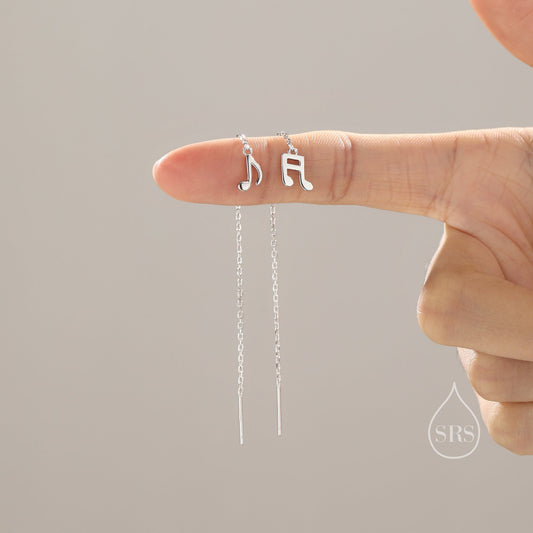 Mismatched Pair of Music Symbol Threader Earrings in Sterling Silver, Silver, Gold or Rose Gold, Tiny Music Note Ear Threaders