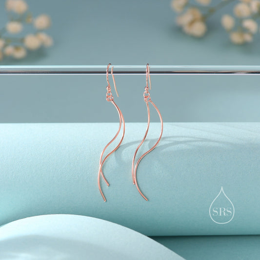 Sterling Silver Minimalist Wave Ear Wire Drop Earrings, Silver, Gold and Rose Gold, Spiral Threaders, Spiral Earrings, Wave Dangle Earrings