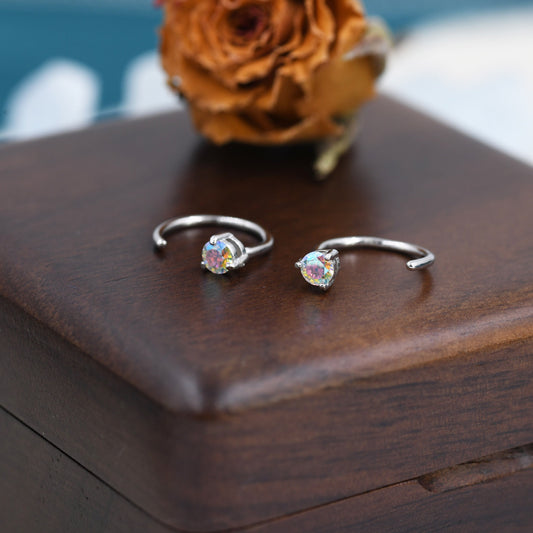 Aurora AB Crystal Tiny CZ Threader Hoop Earrings in Sterling Silver, Silver or Gold, Colour Changing Crystals, Open Hoop Earrings, Huggies