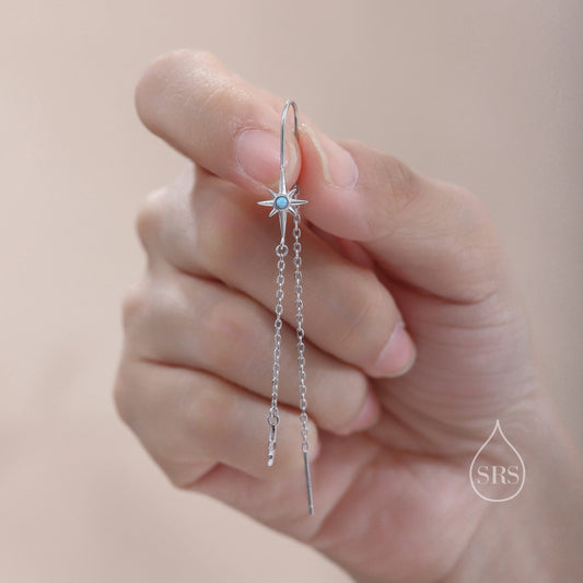 Opal Starburst and Star U Shape Threader Earrings in Sterling Silver, Silver or Gold or rose gold , North Star Ear Threaders