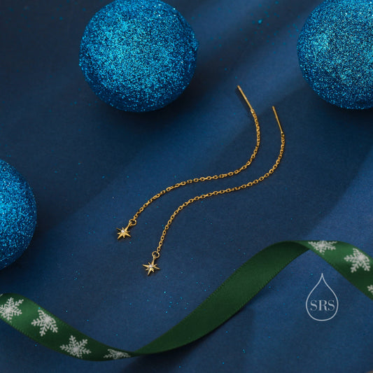 Extra Tiny CZ Starburst Threader Earrings in Sterling Silver, Silver or Gold, North Star Ear Threaders, 10cm long threaders, Double Piecing
