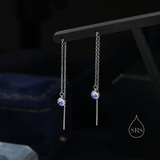 Sale! Moonstone Dot Long Threader Earrings in Sterling Silver, Lab Moonstone Coin Ear Threaders, Silver or Gold, Moonstone Threaders