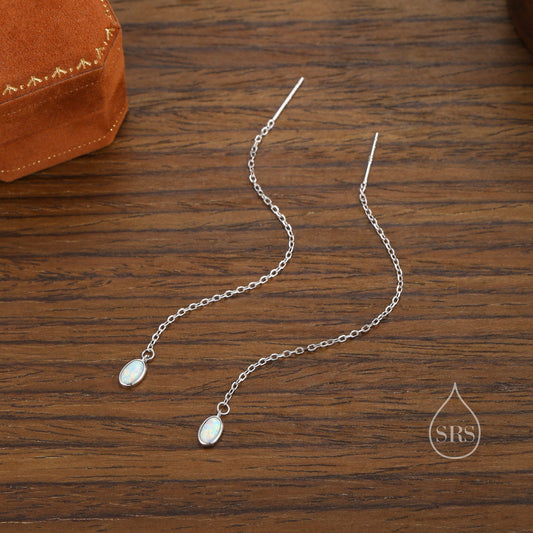 Sale! Oval Opal Threader Earrings in Sterling Silver, Silver or Gold, Opal Ear Threaders, Opal Earrings, Ear Threaders
