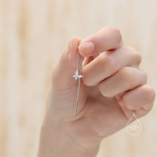 Sterling Silver CZ Butterfly Ear Threaders, Butterfly Threader Earrings, Dainty Butterfly Dangle Earrings, Butterfly Earrings