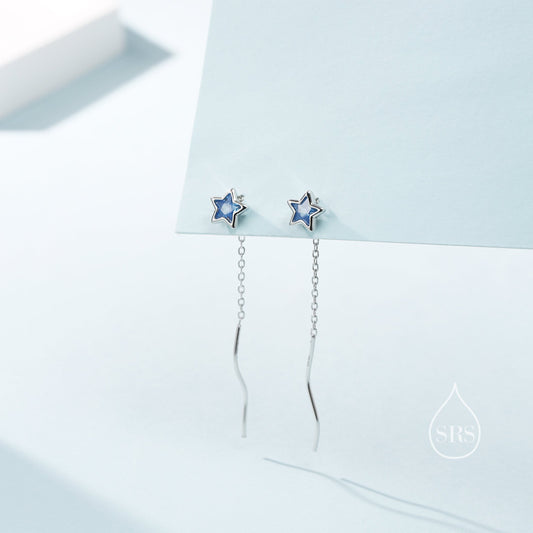 Aquamarine Blue Star Bezel CZ Crystal Threader Earrings in Sterling Silver, Silver or Gold, Minimalist Star Cut Ear Threaders