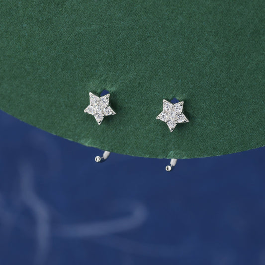 Star Huggie Hoop Earrings in Sterling Silver, Silver Gold or Rose Gold, Star CZ Open Hoops, Pull Through Threaders, Half Hoops