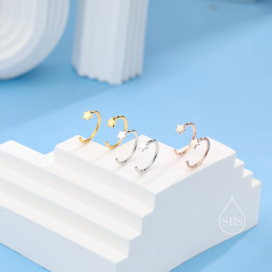 Tiny Star Huggie Hoop Earrings in Sterling Silver, Silver, Gold or Rose Gold, Dainty Little Star Open Threader, Threader Hoop Earrings