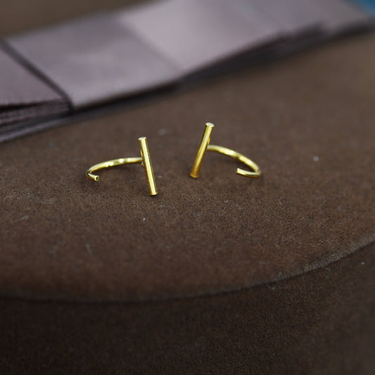 Minimalist Ball or Bar Huggie Hoop Threader Earrings in Sterling Silver, Silver or Gold, Bar Pull Through Open Hoop Earrings