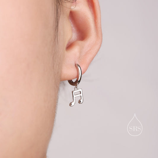 Mismatched Pair of Music Symbol Huggie Hoop Earrings in Sterling Silver, Silver, Gold or Rose Gold, Tiny Music Note Hoops