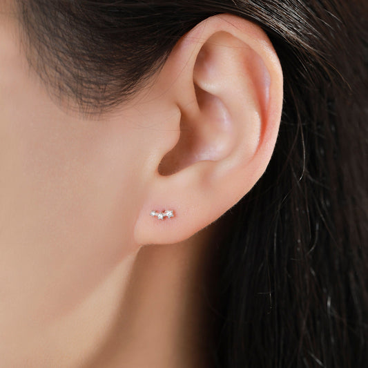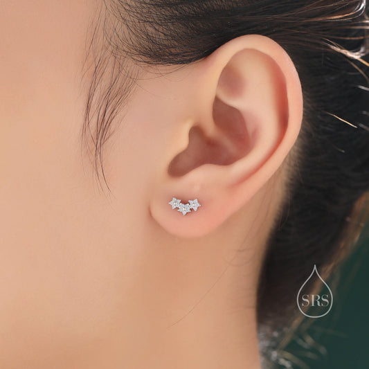 Tiny CZ Trio Internally Threaded Flat Back /Screw Back/Stud Earrings in Sterling Silver, Silver or Gold, Geometric Tiny Three Star Earrings