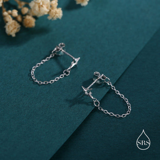 Starburst CZ Dangle Chain Stud Earrings in Sterling Silver, Silver, Gold, North Star Earrings, Star Ear Jacket, Star Earrings