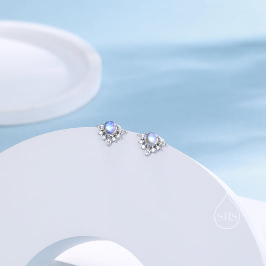 Vintage Inspired Moonstone Flower CZ Stud Earrings, Lab Moonstone Halo CZ Earrings, Simulated Moonstone Earrings