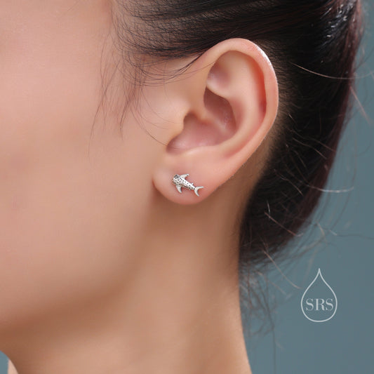 Very Tiny Whale Shark Stud Earrings in Sterling Silver, Silver or Gold or Rose Gold, Cute Whale Shark Earrings
