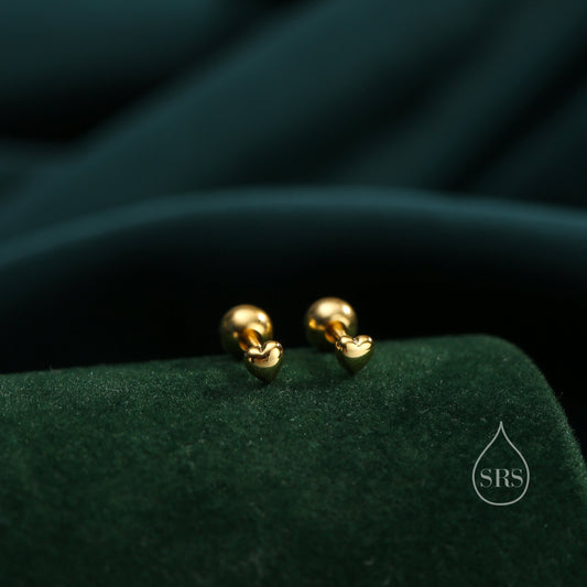 Extra Tiny Heart Barbell Earrings in Sterling Silver, Silver or Gold, 3mm Screw Back Heart Earrings, Screwback Earring