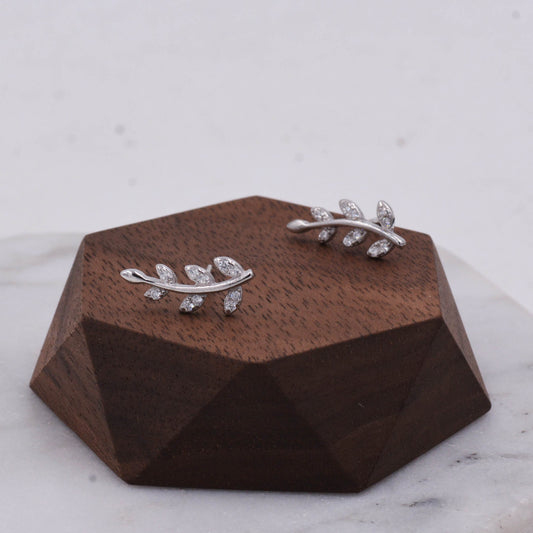 CZ Leaf crawler Earrings with Dangle Chains in Sterling Silver, Silver, Gold or Rose Gold, Olive Branch Climber Earrings, Nature Inspired