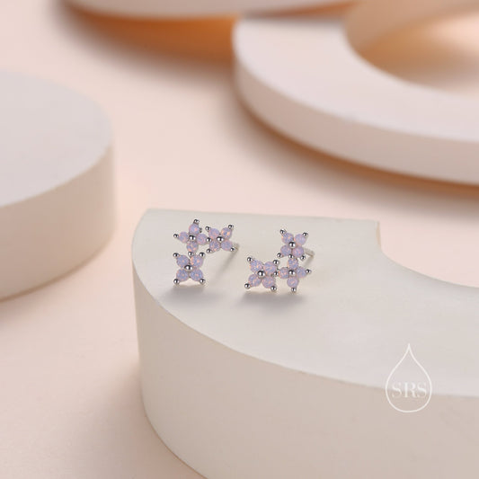 Tiny Hydrangea Bouquet CZ Stud Earrings in Sterling Silver, Silver or Gold, Opal Blue or Opal Pink, Three CZ Flower Earrings, CZ Cluster