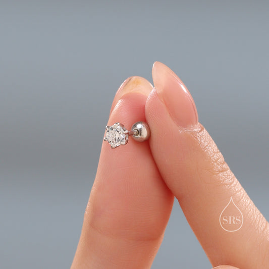 Brilliant Cut 4mm CZ Barbell Earrings in Sterling Silver, Silver or Gold, Six Prong CZ Screw Back Earrings, Screwback, Helix and Cartilage