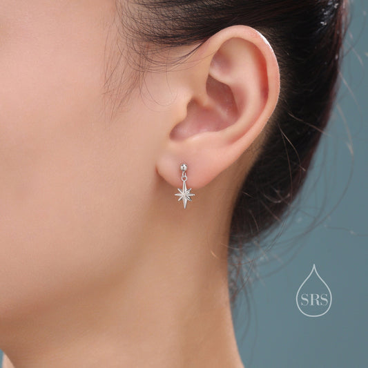 Delicate Starburst Dangle Stud Earrings in Sterling Silver, Silver, Gold or Rose Gold, Star Earrings, Sunburst Earrings, Celestial Star