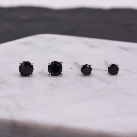 Sterling Silver CZ Crystal Solitaire Stud Earrings, Simulated Black Diamond, Minimalist Classic and Elegant Jewellery
