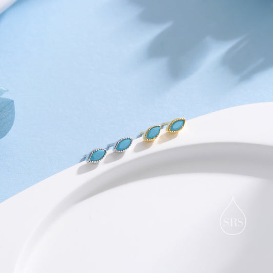 Extra Tiny Turquoise Blue Marquise CZ Stud Earrings in Sterling Silver, Silver or Gold, Dainty Marquise Crystal Earrings, Vintage Inspired