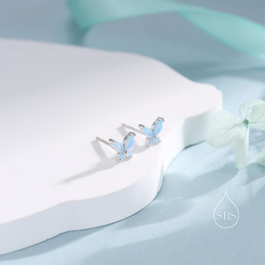 Sterling Silver Opal Blue CZ Butterfly Stud Earrings, Gold or Silver or Rose Gold, Marquise CZ Earrings, Butterfly Earrings