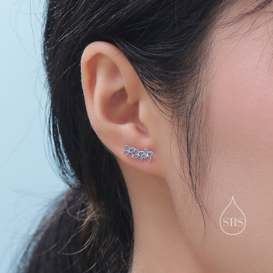 Hand Painted Enamel Hydrangea Flower Bouquet Stud Earrings in Sterling Silver, Available in Three Colours, Enamel Flower Earrings