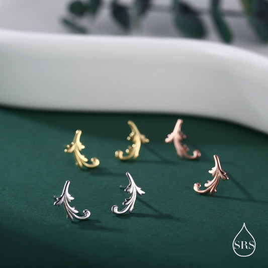 Tiny Baroque Swirl Stud Earrings in Sterling Silver, Silver or Gold or Rose Gold, Baroque Style Inspired Tiny Stud in Silver