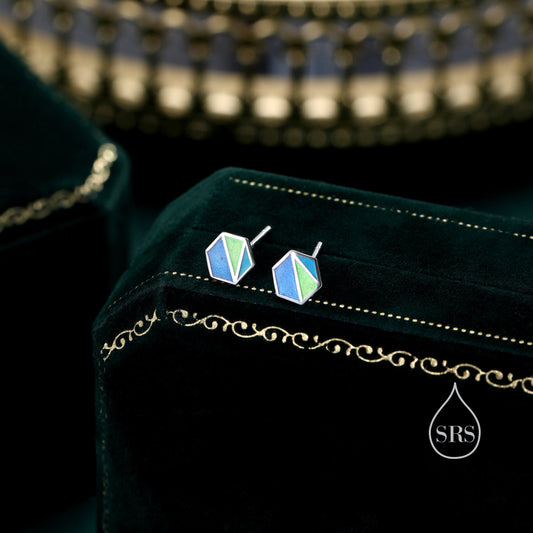 Enamel Hexagon Stud Earrings in Sterling Silver, Hand Painted Enamel Hexagon Earrings, Hexagon Stud