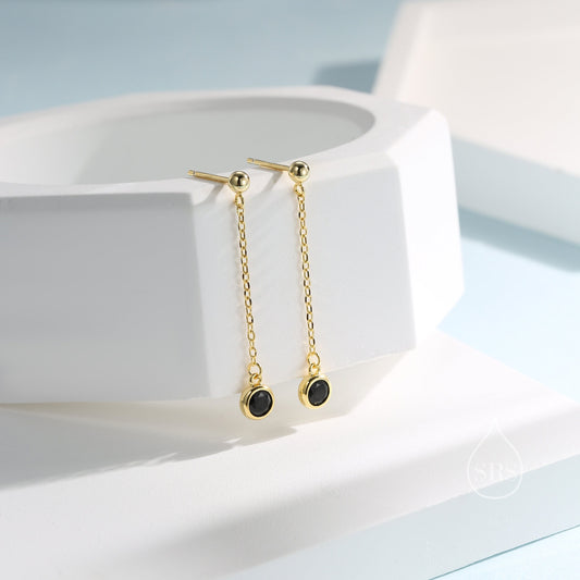 Sale!Black CZ with Chain Dangle Stud Earrings in Sterling Silver, Silver or Gold, Black CZ Drop Earrings