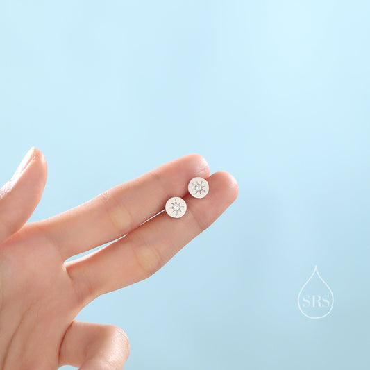 Starburst Disk Stud Earrings in Sterling Silver, Silver or Gold or Rose Gold, Star Earrings, Sunburst Earrings, Celestial Jewellery