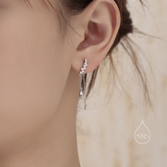 Sterling Silver Clear CZ Constellation Cluster Stud Earrings with Dangle Chains, Silver or Gold, Bezel CZ Cluster Earrings, CZ Wing Earrings