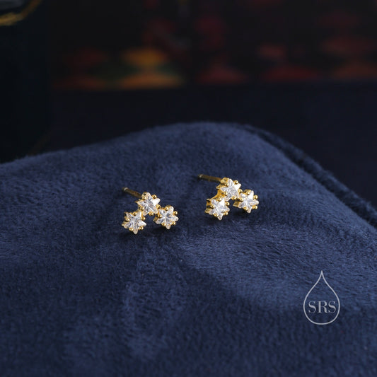 Tiny Star Shape CZ Trio Stud Earrings in Sterling Silver, Silver, Gold or Rose Gold, Three Star Earrings, Sunburst Earrings, Celestial