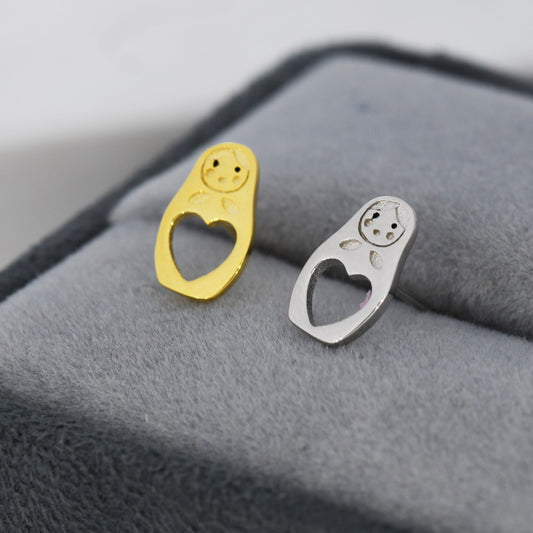 Sterling Silver Nesting Doll Stud Earrings, Silver Finish or Gold Finish, Nesting Doll Earrings
