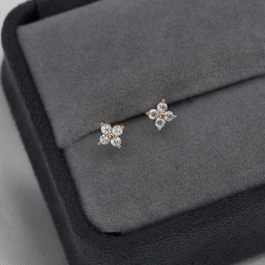 CZ Flower Stud Earrings in Sterling Silver, Rose Gold Over Sterling Silver, Hydrangea Flower Earrings, Four CZ Earrings