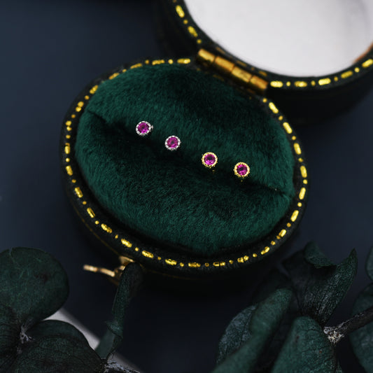 Extra Tiny 2mm Ruby Red CZ Stud Earrings in Sterling Silver, Barely Visible CZ Earrings, Stacking Earrings, Extra Small Stud Earrings