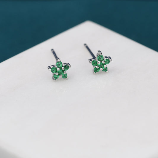Emerald Green CZ Flower Stud Earrings in Sterling Silver, Silver or Gold, Green Crystal Flower Earrings, Stacking Earrings