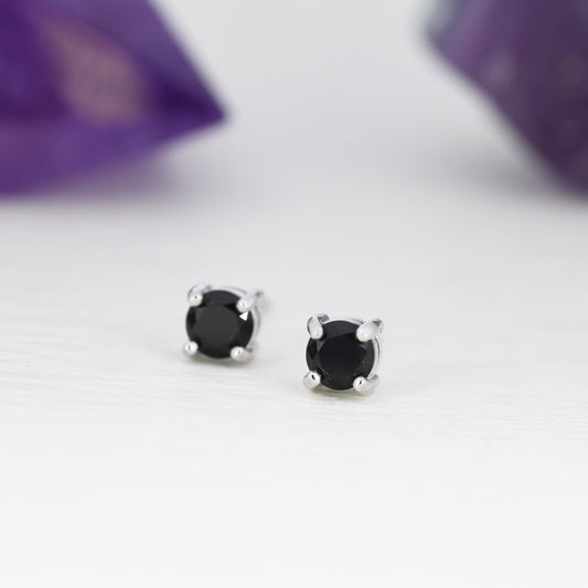 4mm Black CZ Stud Earrings in Sterling Silver, Silver or Gold Finish, Brilliant Cut Black CZ Earrings, Minimal CZ Stud Prong Set