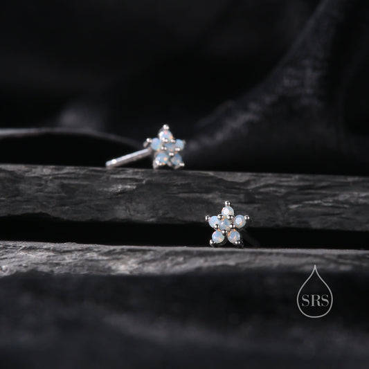 Tiny Opal Blue Forget-me-not CZ Stud Earrings in Sterling Silver, Silver or Gold or Rose Gold, CZ Flower Stud Earrings