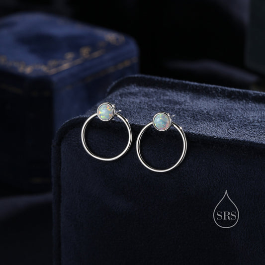Double Circle White Opal Ear Jacket in Sterling Silver, Two Way Detachable Circle Earrings, Front and Back Lab Opal Earring, Silver or Gold