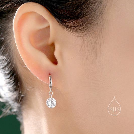 Dangle CZ Huggie Hoop Earrings in Sterling Silver, Silver or Gold, Delicate Sparky CZ Skinny Hoops