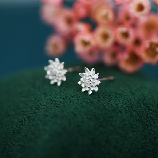 Chrysanthemum Flower Stud Earrings in Sterling Silver, Silver or Gold, Nature Inspired Flower Earrings, November Birth Flower, Botanical