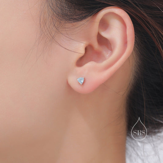 Genuine Sky Blue Topaz Stud Earrings in Sterling Silver, Silver or Gold, Trillion Cut Natural Sky Blue Topaz Earrings, Double Pronged