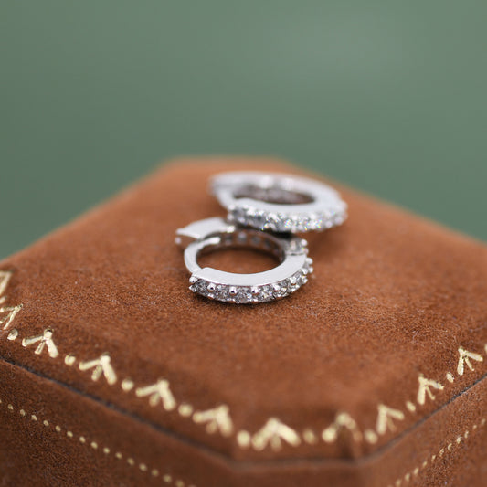 Minimalist CZ Huggie Hoops in Sterling Silver, 6mm, 8mm, 10mm and 12mm Clicker Hoops, Rose Gold or Gold, Simple Sleeper Hoop Earrings