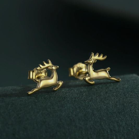Running Reindeer Stud Earrings in Sterling Silver, Silver or Gold, Nature Inspired Animal Earrings