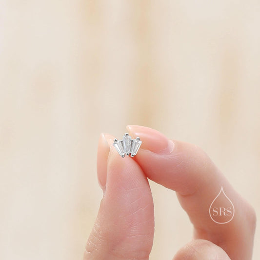 Triple Trapezoid CZ Screw back Earrings in Sterling Silver, Silver, Gold or Rose Gold over Sterling Silver, CZ Cluster Screwback Earrings