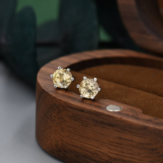 Genuine Yellow Citrine Stud Earrings in Sterling Silver, 5mm Citrine Earrings, Six Prong Citrine Crystal Earrings